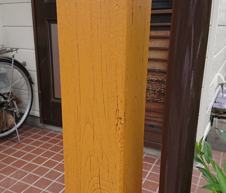本日は、玄関柱の塗替えです。