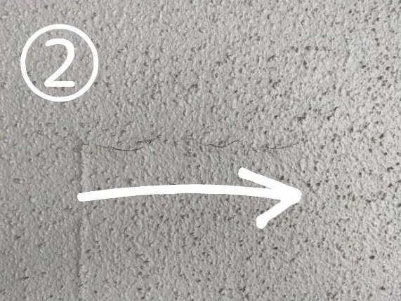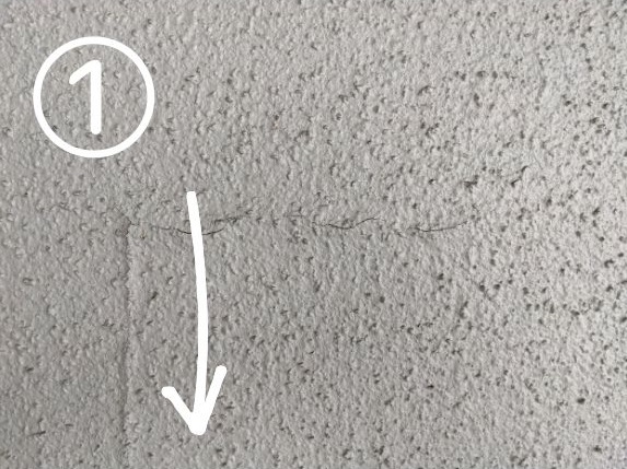 ②のような横方向のクラックは、建物の構造に何かしらの問題が起こったためにできていることが多く、早めの対処が必要です。