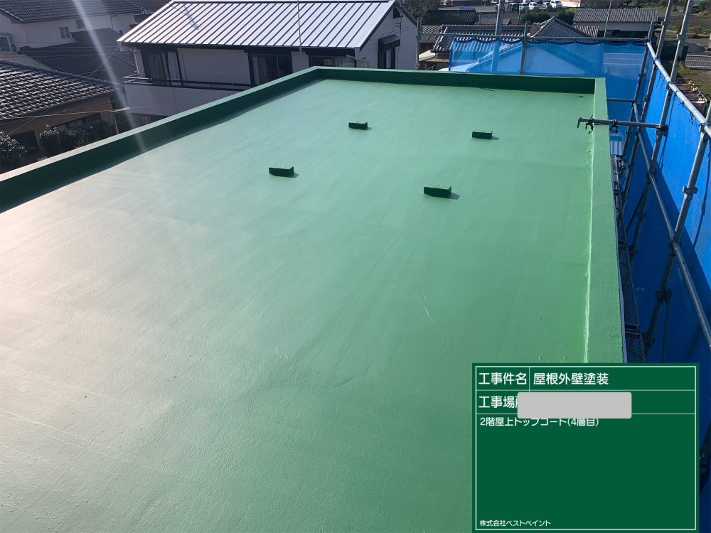 宮崎県の屋根外壁塗装、防水工事はベストペイントにお任せ下さい 都城市防水工事の施工例です サラセーヌ通気緩衝工法 【施工前】 【施工中】 【施工中】
