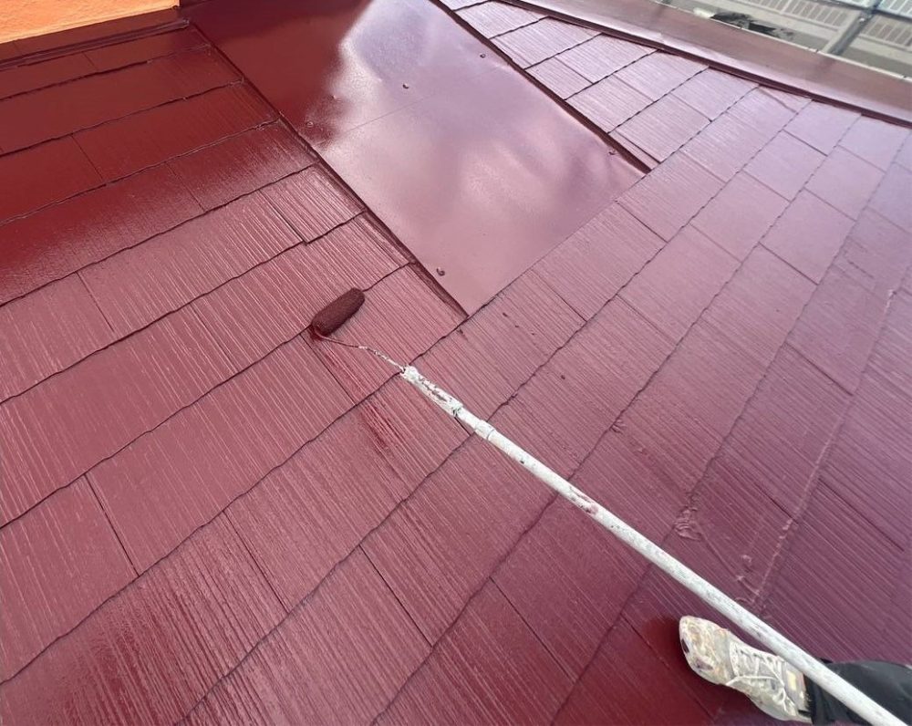 本日もこちらの現場、施工中のひと作業・・・屋根塗装をお送りします。 【下塗り】 今回は下塗りに、ほとんどの既存塗膜に強力に密着するウルトラルーフプライマーを使用しました。 【中塗り】 弊社で […]